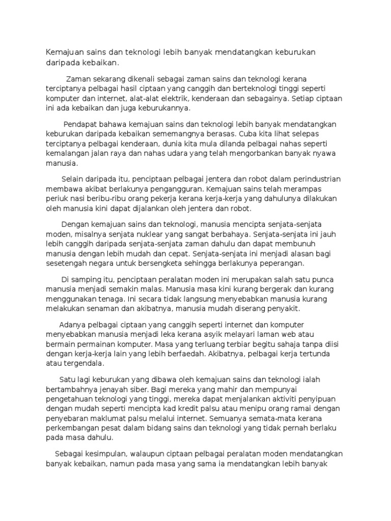 Kemajuan Sains Dan Teknologi Lebih Banyak Mendatangkan Keburukan Daripada Kebaikan Pdf