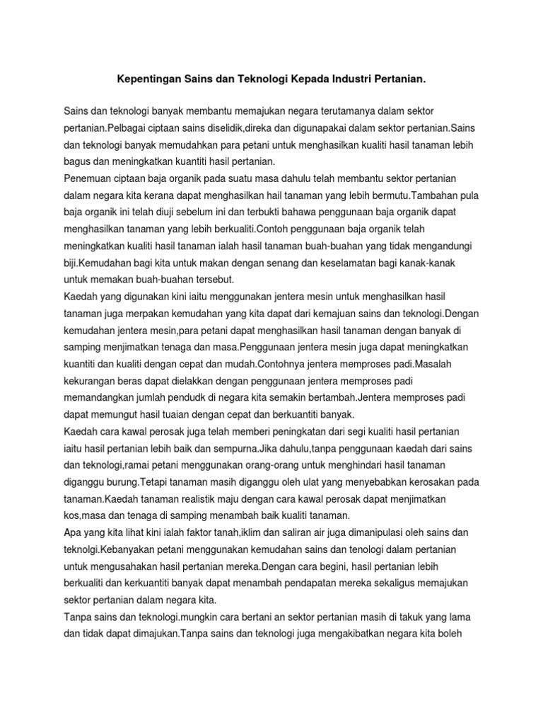 Tidak dinafikan ciptaan sains dan teknologi hari ini telah memajukan pelbagai bidang seperti perubatan pertanian perikanan pendidikan dan perikanan.